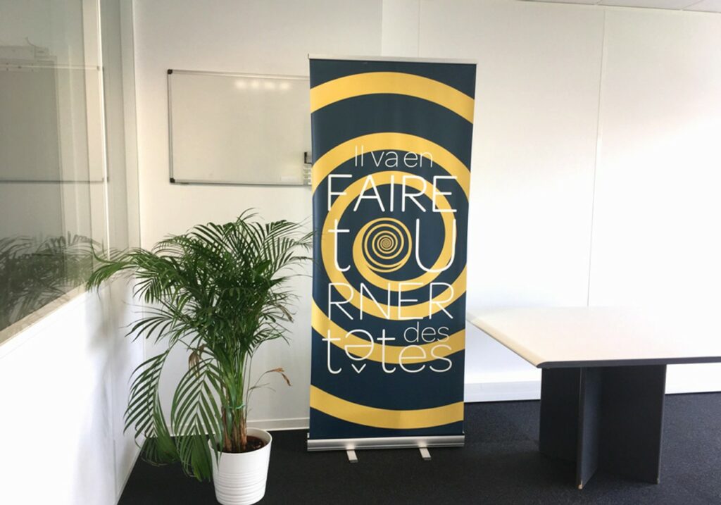 Spécialement adapté pour les salons, foires ou même les réunions, le Roll-up est un support accueillant.