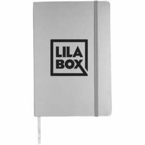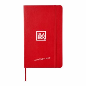 Ce carnet cartonné au design exclusif comprend une fermeture élastique, 80 feuilles de papier ligné (80 g) pour une écriture confortable et dispose d'une poche extensible à l'arrière pour ranger des petits notes. Présenté dans un étui cadeau. Disponible en 9 coloris : argent, blanc, bleu clair, marine, jaune, magenta, rouge, vert, violet.