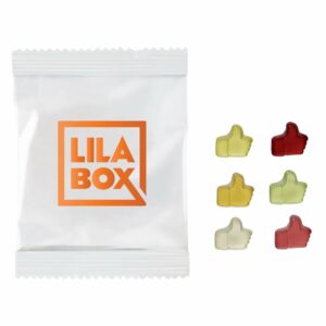 Ajoutez une touche d'originalité à vos promotions avec nos bonbons gélifiés en forme de pouce. Ces friandises amusantes et délicieuses seront appréciées de tous. Chaque lot de 250 pièces est parfait pour les événements d'entreprise, les salons professionnels ou les cadeaux promotionnels. Personnalisez-les avec votre logo pour une visibilité accrue.