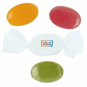 Personnalisez l'emballage avec votre logo ou message pour une visibilité maximale. Que ce soit pour une campagne marketing ou pour remercier vos clients, ces bonbons emballés individuellement sont une option délicieuse et mémorable. Ce produit promotionnel séduira les grands et les petits, avec ses douces saveurs de pomme, de cassis, de citron, d’orange ou de cerise.