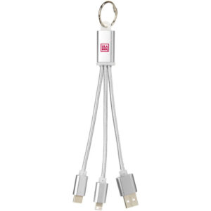 Le câble de chargement 3 en 1 est un accessoire high-tech innovant. Compatible avec plusieurs types d'appareils, il assure un chargement rapide et efficace. Son design compact avec porte-clés permet de l'emporter partout. Personnalisez-le avec votre logo pour une promotion continue de votre marque.