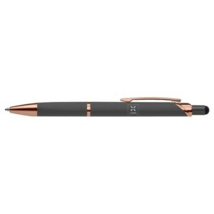 Polyvalent et pratique, ce stylo allie l'écriture traditionnelle et moderne. Grâce à son stylet intégré, il est idéal pour naviguer sur les écrans tactiles. Ce stylo offre une écriture douce et fluide, et son design personnalisable vous permet d'ajouter une touche personnelle. Disponible en bordeaux, marine et taupe.