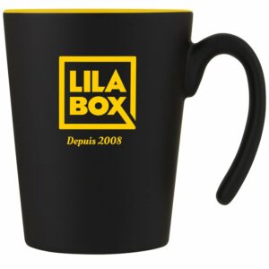 Offrez une expérience de dégustation raffinée avec ce mug. En céramique de haute qualité, il conserve la chaleur tout en restant agréable en main. Son design épuré et sa grande anse en font un support élégant pour votre logo. Disponible en 6 coloris : jaune/noir, blanc/noir, bleu/noir, orange/noir, rouge/noir, vert/noir.