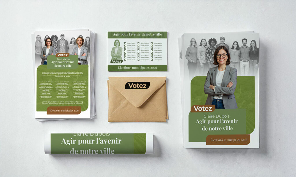 Avant et pendant la campagne, développez votre visibilité avec des supports libres conçus pour informer, convaincre et mobiliser.